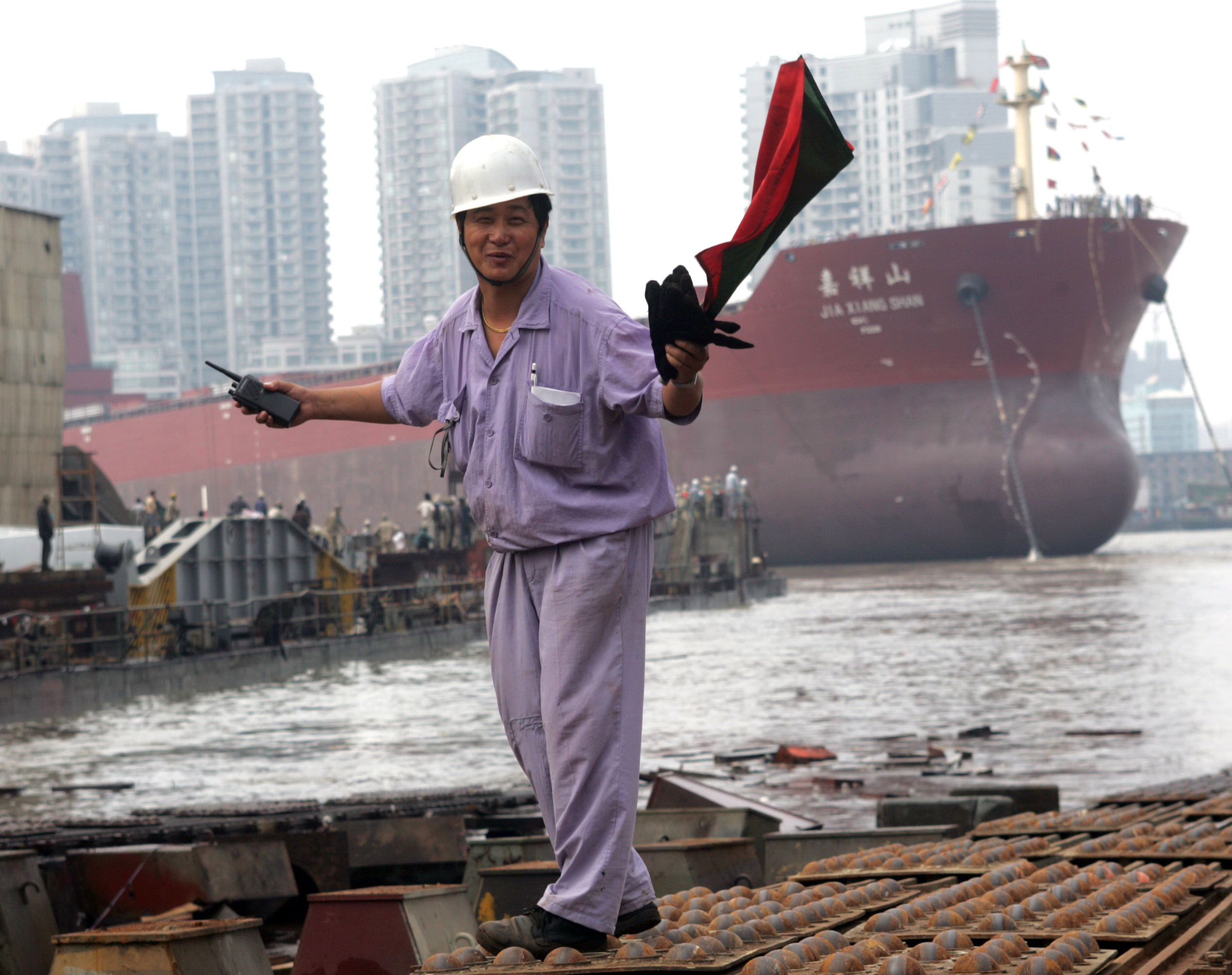 2004年8月20日,上海陸家嘴地區(qū)百年造船史上最后一艘“上海制造”的遠(yuǎn)洋巨輪“嘉祥山”命名下水。隨后,這里的大部分船塢和船臺(tái)將逐步拆除,陸家嘴的造船史也隨之畫上“句號(hào)”。王杰 攝